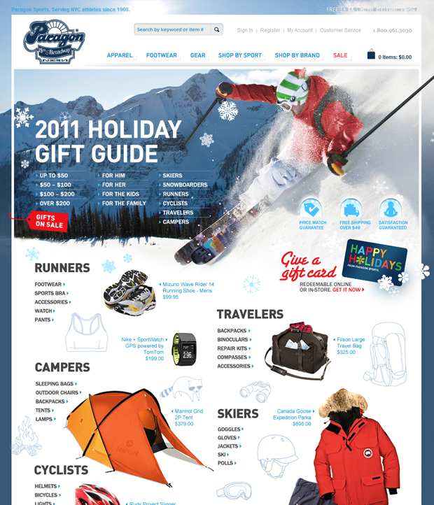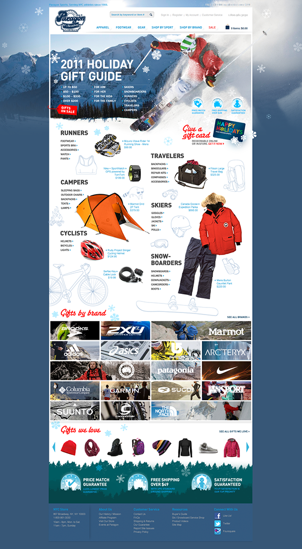 Created in close collaboration with Paragon's marketing team, the 2011 Holiday Gift Guide showcased their extensive line of winter sports gear.