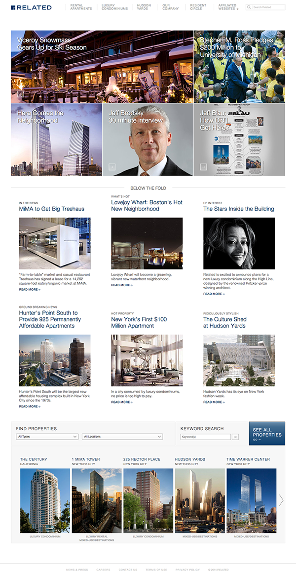 An integrated digital and out-of-home campaign. We redesigned Related.com with a clean, elegant layout and streamlined user experience. The supporting marketing plan included digital banners, outdoor kiosk ads, and a video produced to run in New York City taxis.